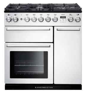 The multi-function oven has 7 functions, including fan ovens, defrosting and browning. The 90cm and has a multifunction fan oven, grill, and extra fan oven on the right hand side, while the 110cm model has a grill, a multifunction fan oven on the left, a fan oven on the right, and a bread proving/storage drawer on the bottom right. Both sizes come with a choice of induction or gas hob.